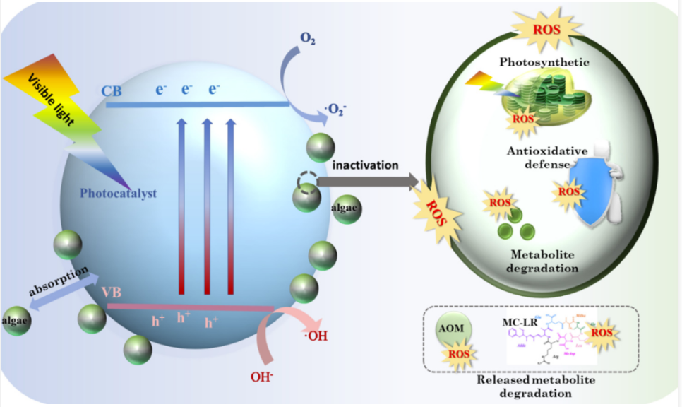 有害藻類水華對水生生態(tài)系統(tǒng)和人類健康造成不利影響,引起了人們的極大關(guān)注。近年來,可見光驅(qū)動(dòng)(VLD)光催化以其低成本、機(jī)械穩(wěn)定性和優(yōu)異的去除效率等獨(dú)特特性,在藻類滅活方面引起了人們的關(guān)注。然而,可見光的低利用率和電子-空穴(e(-)-h(+))對是傳統(tǒng)光催化劑的主要缺點(diǎn)??茖W(xué)界一直致力于修飾VLD光催化劑,以增強(qiáng)其抗醛活性。本文簡要綜述了最新改性VLD光催化劑的抗藻類性能。對VLD光催化失活機(jī)制的總結(jié)表明,活性氧(ROS)可以誘導(dǎo)藻類細(xì)胞的氧化損傷和釋放的有機(jī)物的光催化降解。此外,簡要概述了影響VLD催化氧化除藻效果的因素,如光催化劑用量、藻類濃度和種類,以及不同水基質(zhì)的物理化學(xué)性質(zhì),如pH值、天然有機(jī)物和無機(jī)離子。本綜述匯總了對VLD光催化失活這一新興領(lǐng)域的展望。