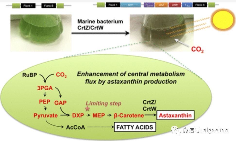 希望進(jìn)一步的代謝途徑工程能夠減少潛在的瓶頸,進(jìn)一步提高蝦青素產(chǎn)量。