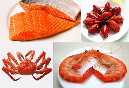 圖2.鮭鱒魚(yú)肌肉及蝦蟹外殼含有蝦青素(圖片引自網(wǎng)絡(luò))
