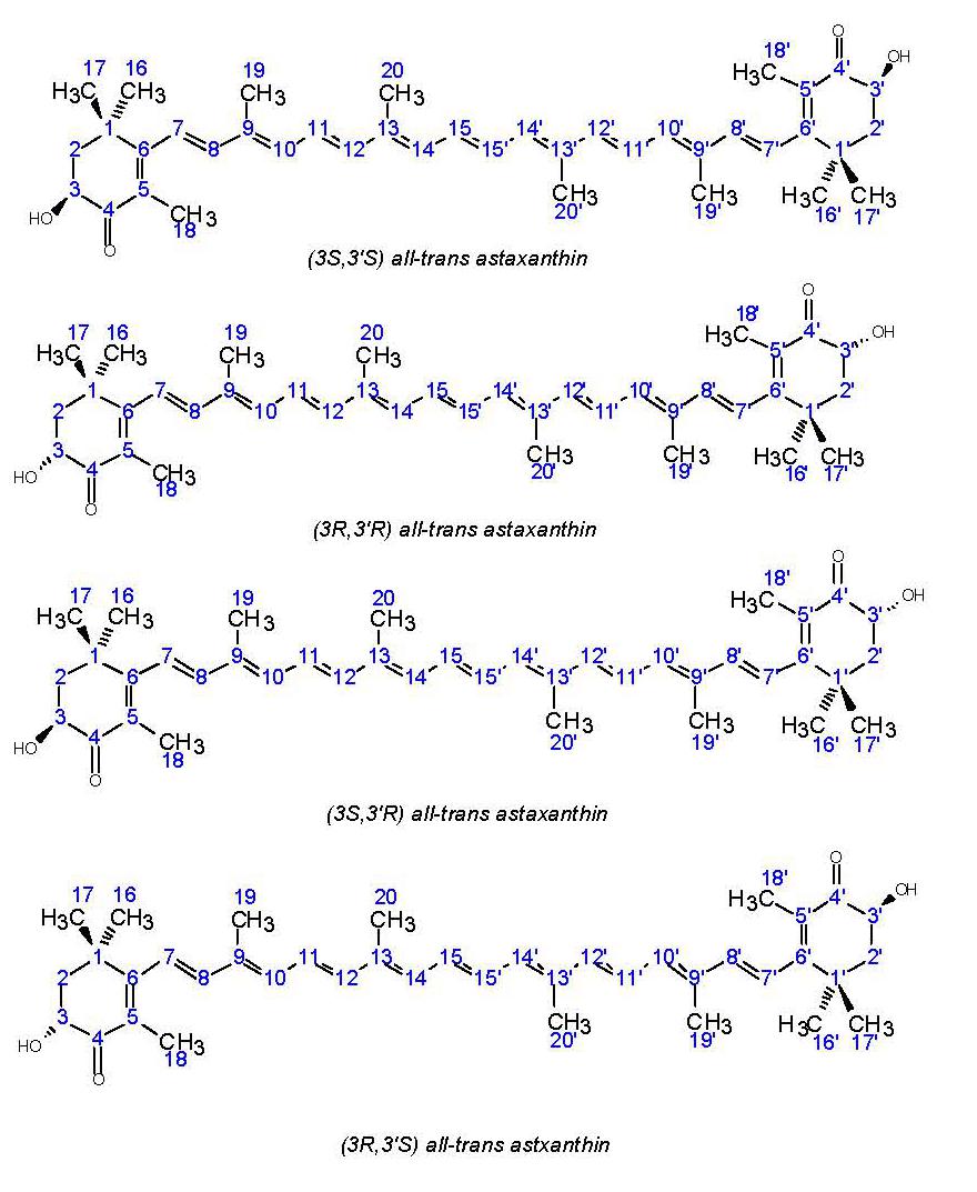 圖3.蝦青素的四種化學(xué)結(jié)構(gòu)式,by KD Nguyen
