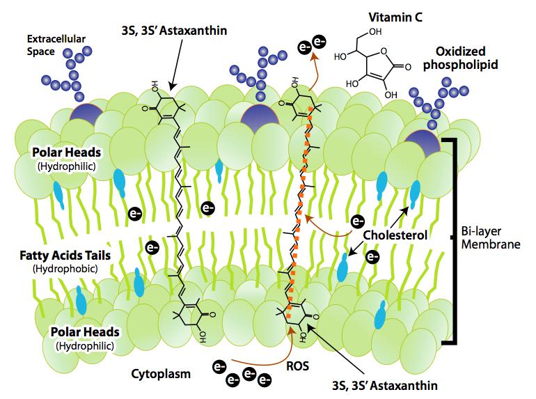 圖6. 蝦青素在細(xì)胞膜中形成穿膜(引自http://truttmd.com/)