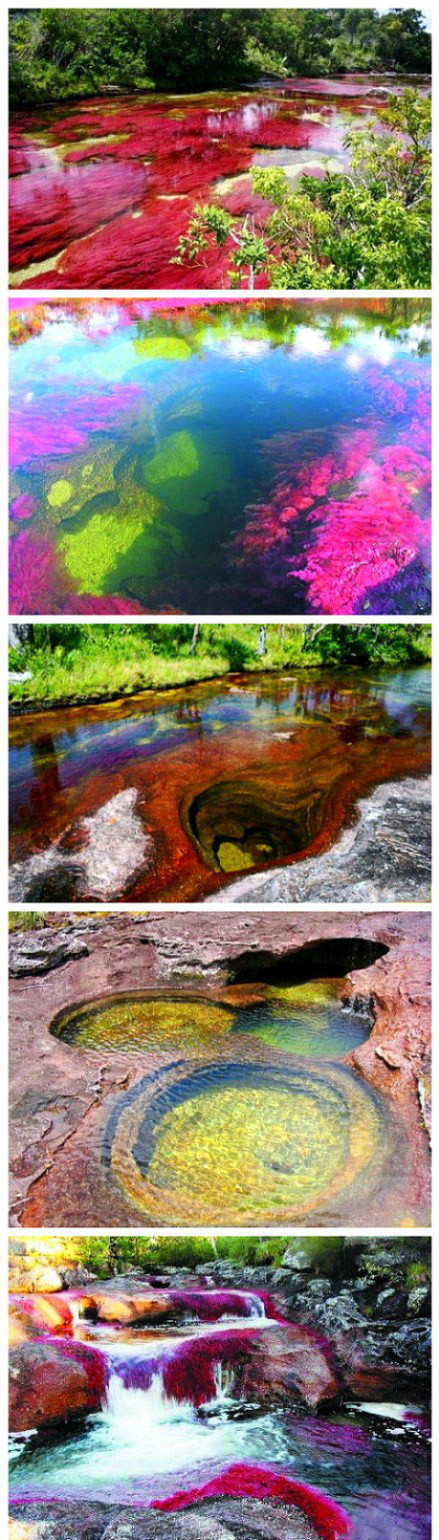哥倫比亞有一條名叫CanoCristales的河,河里有不同顏色的藻類…