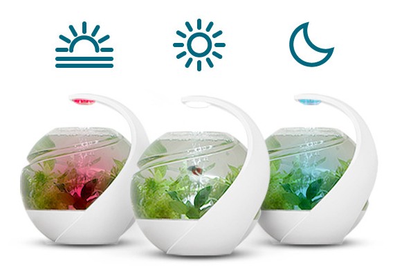 此外魚缸頂部的LED燈,使用人眼看不到的特殊波長,可有效抑制藻類繁殖,同時提供其他植物生長所需的光源,使其可進(jìn)行光合作用提供氧氣。LED燈的設(shè)計(jì)有三種變化,分別是清晨的紅光、白天的日光以及傍晚的藍(lán)光,模擬太陽光照從白天到晚上的照周期變化。