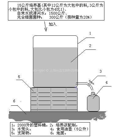 一、操作方法? 上海光語生物科技有限公司出品的“光合細(xì)菌培養(yǎng)基”每公斤可制作100公斤的光合細(xì)菌液體產(chǎn)品,即生產(chǎn)的第一步是把光合細(xì)菌培養(yǎng)基配成1%濃度的水溶液。成品一般可達(dá)30–100億/克的濃度。 二、生產(chǎn)方法:? 用白色或透明塑料桶(或用塑料袋來裝培養(yǎng)液更好)裝入20公斤清潔淡水。?? 取“光合細(xì)菌培養(yǎng)基”(大包料中取160克,小包料中取40克,即大包比小包等于4比1,溶解入水中, […]…