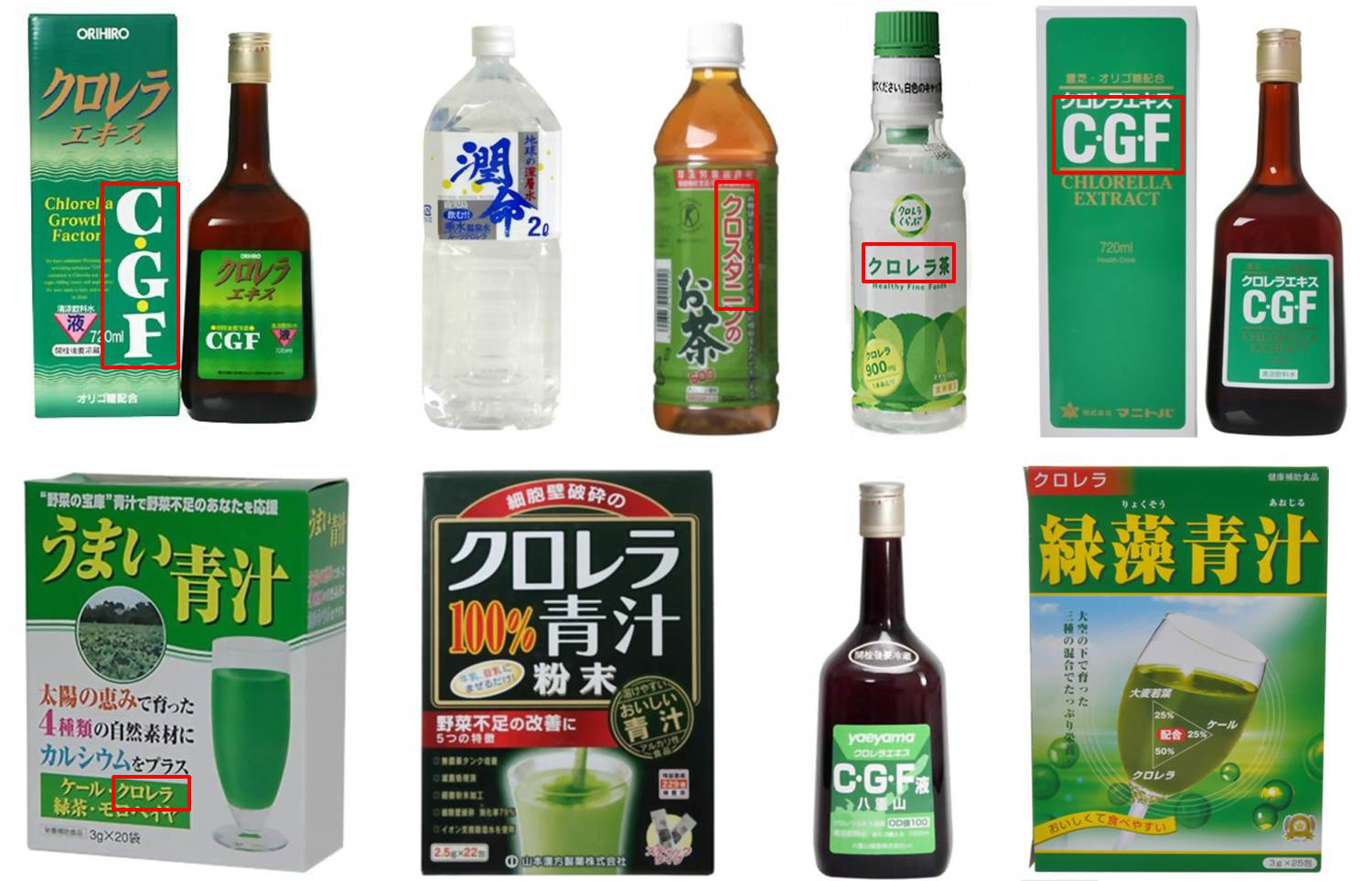 圖9. 日本太陽小球藻系列產(chǎn)品,部分標(biāo)注含有CGF