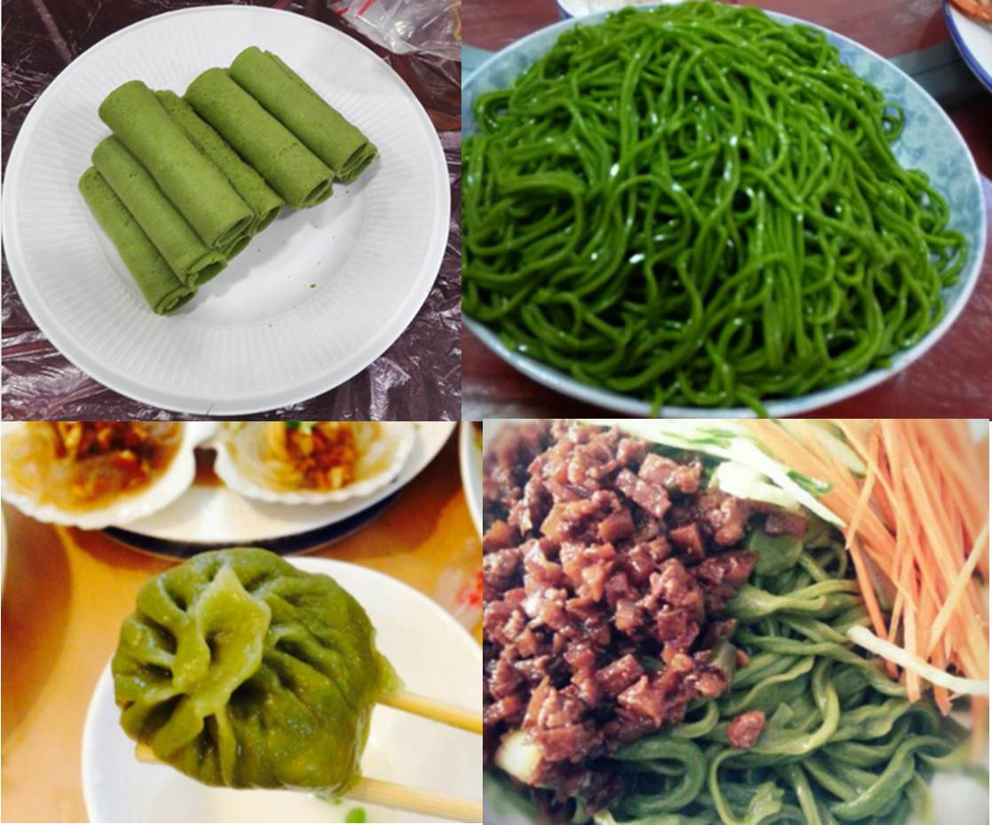 (1)作為食品。小球藻具體的營養(yǎng)成分就不列表了,特征是蛋白含量高/質(zhì)量高、葉綠素高、脂肪酸中不飽和成分含量高、微量元素和維生素種類多含量豐富。最初小球藻開發(fā)作為食品,一個(gè)原因是它生長速度快,第二個(gè)原因就是因?yàn)榈鞍缀扛?,最高可接?0%,不過小球藻與其他單細(xì)胞蛋白開發(fā)的物種一樣,具有核酸高的特點(diǎn),因此無法直接作為主糧。不過因?yàn)樾∏蛟寰哂性逑阄逗腿~綠素高等特點(diǎn),作為食品加工中的添加劑卻具有獨(dú)特的優(yōu)勢,例如作為各種食品加工的天然色素、烘焙中的調(diào)香劑(喜羊羊的青草蛋糕?)、改善食品配方等。