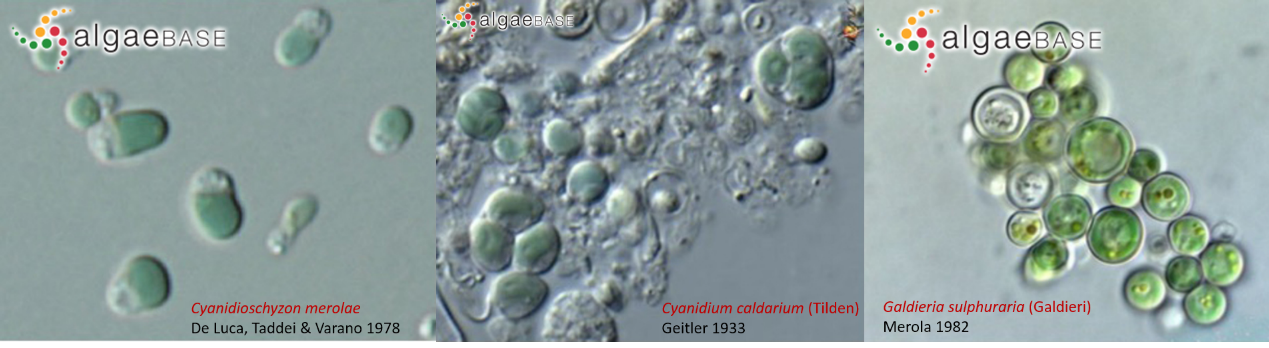 AlgaeBase中Cyanidioschyzon merolae、Cyanidium caldarium和Galdieria sulphuraria三個種的光鏡照片