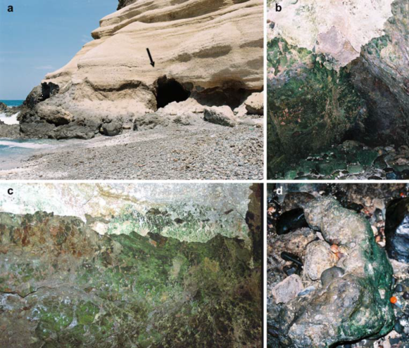 5. 位于智利的阿塔卡馬沙漠沿海洞穴內(nèi),Cyanidium巖壁上形成生物膜。(Azúa-Bustos et al., 2009
