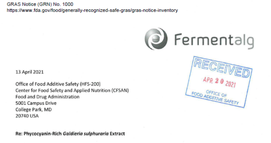 美國FDA關(guān)于G. sulphuraria提取物的安全性備案