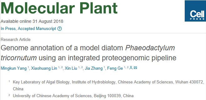 在上述工作基礎(chǔ)上,葛峰課題組對(duì)真核模式硅藻三角褐指藻的基因組進(jìn)行了深度解析并構(gòu)建了蛋白質(zhì)組精細(xì)圖譜,相關(guān)成果以“Genome annotation of a model diatom Phaeodactylum tricornutum using an integrated proteogenomic pipeline”為題于近日發(fā)表在Molecular Plant雜志上。