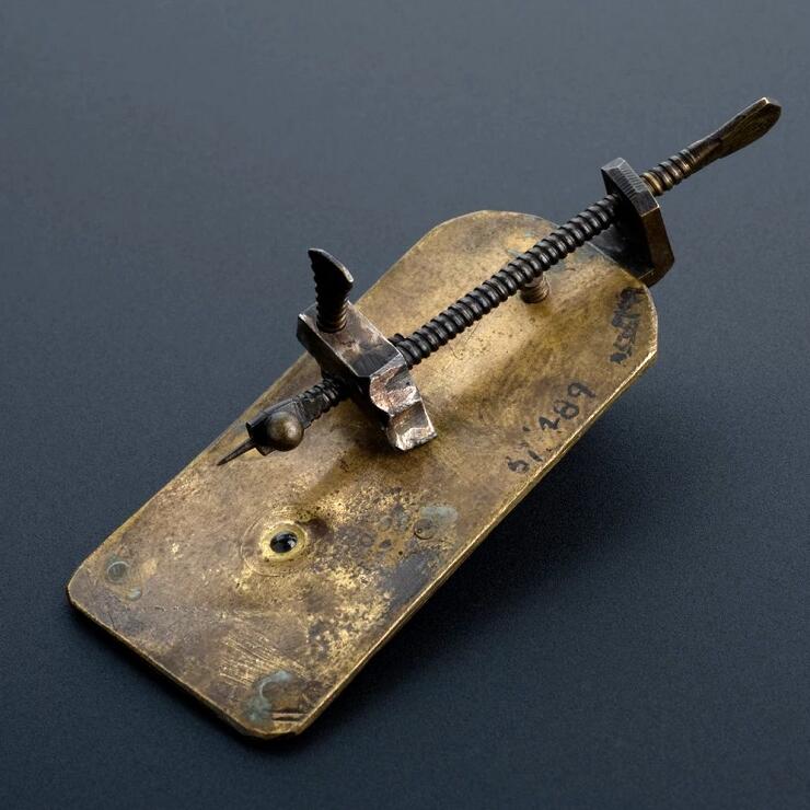 列文虎克簡易顯微鏡的復(fù)制品。圖片:Wellcome Images / wiki commons