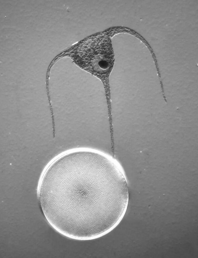 現(xiàn)在,科學(xué)界的共識(shí)是:硅藻既不是動(dòng)物,也不是植物,而是不等鞭毛生物中的一支。不等鞭毛生物和囊泡蟲、有孔蟲組成一個(gè)叫做“SAR超類群”的類群。這個(gè)類群和包括綠色植物在內(nèi)的原始色素體細(xì)胞生物不在一條分支上,和動(dòng)物、真菌所在的后鞭毛類生物的關(guān)系就更遠(yuǎn)了。