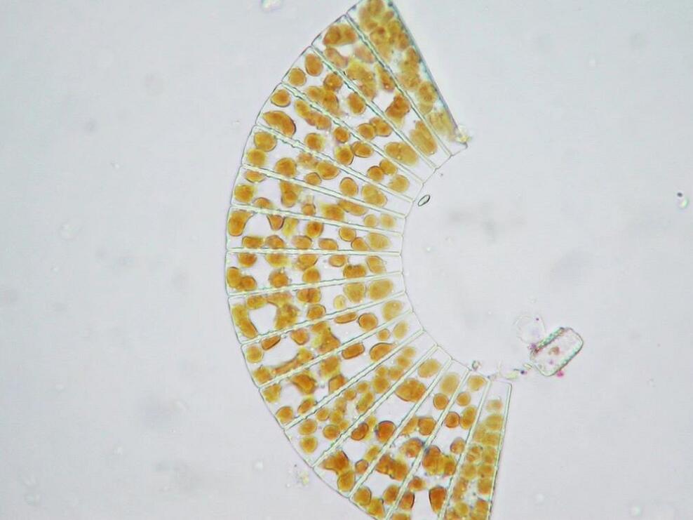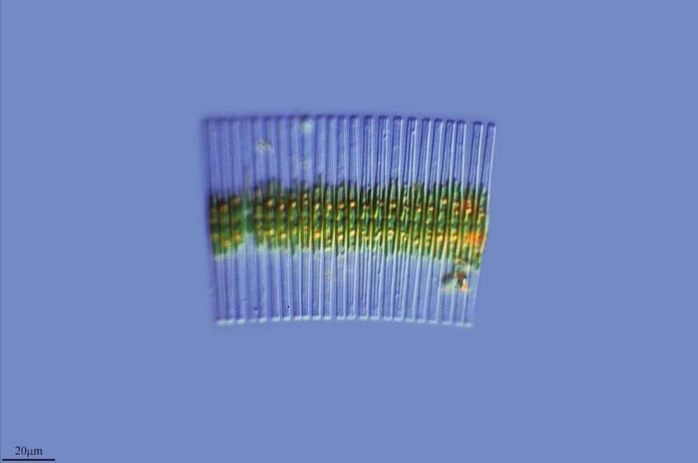 帶狀分布的脆桿藻屬(Fragilaria)群體。圖片:Proyecto Agua
