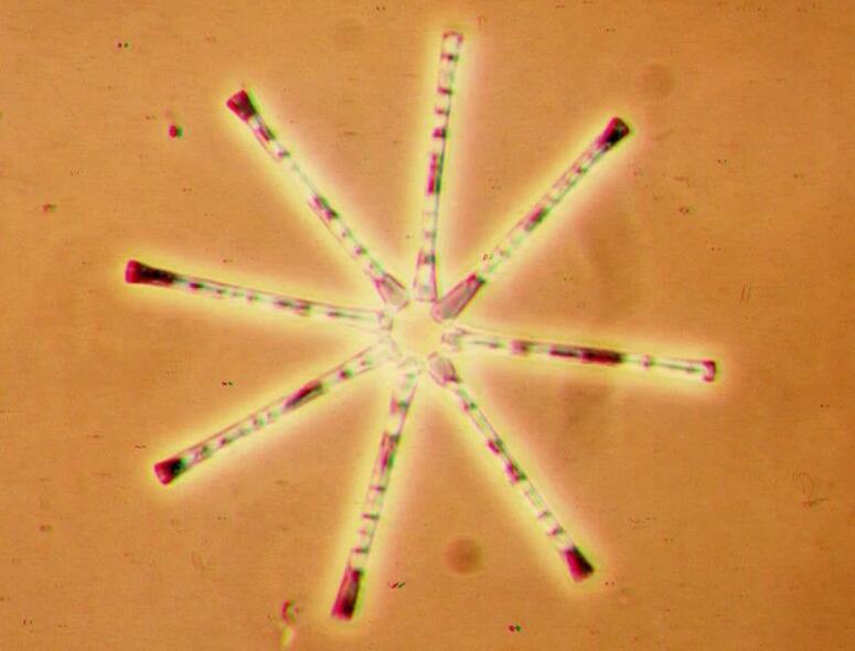 星形排列的聯(lián)星硅藻屬(Asterionella)群體。圖片:nps.gov