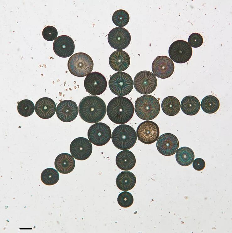 硅藻個(gè)體非常小,一般只有2微米到200微米,最大的圓篩盤藻屬(Coscinodiscus)種類直徑也不過半毫米,肉眼顯然沒法看真切,因此在18世紀(jì)之前,人類從來沒有注意過它們的存在。