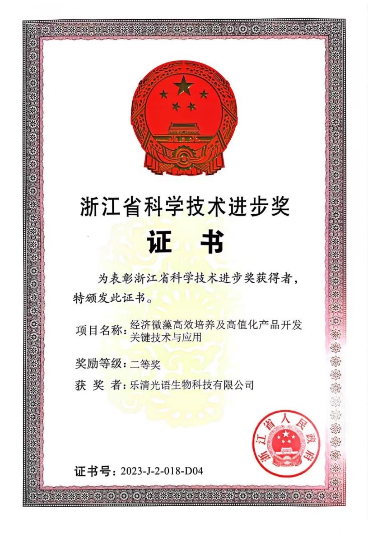 喜報!溫州光語生物科技有限公司榮獲浙江省科學技術進步獎二等獎