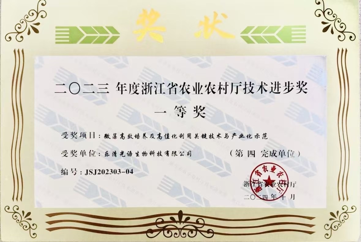 近日,浙江省人民政府正式公布去年年度科學技術進步獎獲獎名單。溫州光語生物科技有限公司(以下簡稱“光語生物”)憑借“經(jīng)濟微藻高效培養(yǎng)及高值化產(chǎn)品開發(fā)關鍵技術與應用”項目,成功斬獲浙江省科學技術進步獎二等獎。這一殊榮不僅是對光語生物在藻類生物技術領域創(chuàng)新能力的肯定,更彰顯了企業(yè)在推動綠色經(jīng)濟與可持續(xù)發(fā)展中的標桿作用。