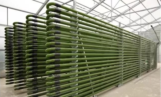 在沙漠干旱地區(qū)的室外培養(yǎng)池,高入射光通量(10萬勒克斯)會導(dǎo)致熱沖擊,使藻類細(xì)胞白化,生長率下降,生長大小不一致,最終會導(dǎo)致培養(yǎng)系統(tǒng)的崩潰。相比之下,室內(nèi)垂直管狀微藻培養(yǎng)系統(tǒng)更有效、更可控、更潔凈,但也存在生產(chǎn)成本也高的問題,其中包括生產(chǎn)車間、耗能、培養(yǎng)基滅菌、熟練工人等各方面的成本。