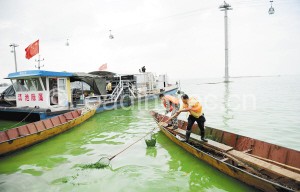 經(jīng)過(guò)以上程序,藍(lán)藻清除率可達(dá)95%-99%,葉綠素A清除率能達(dá)到90%-95%,去藻后的水體可直排滇池。