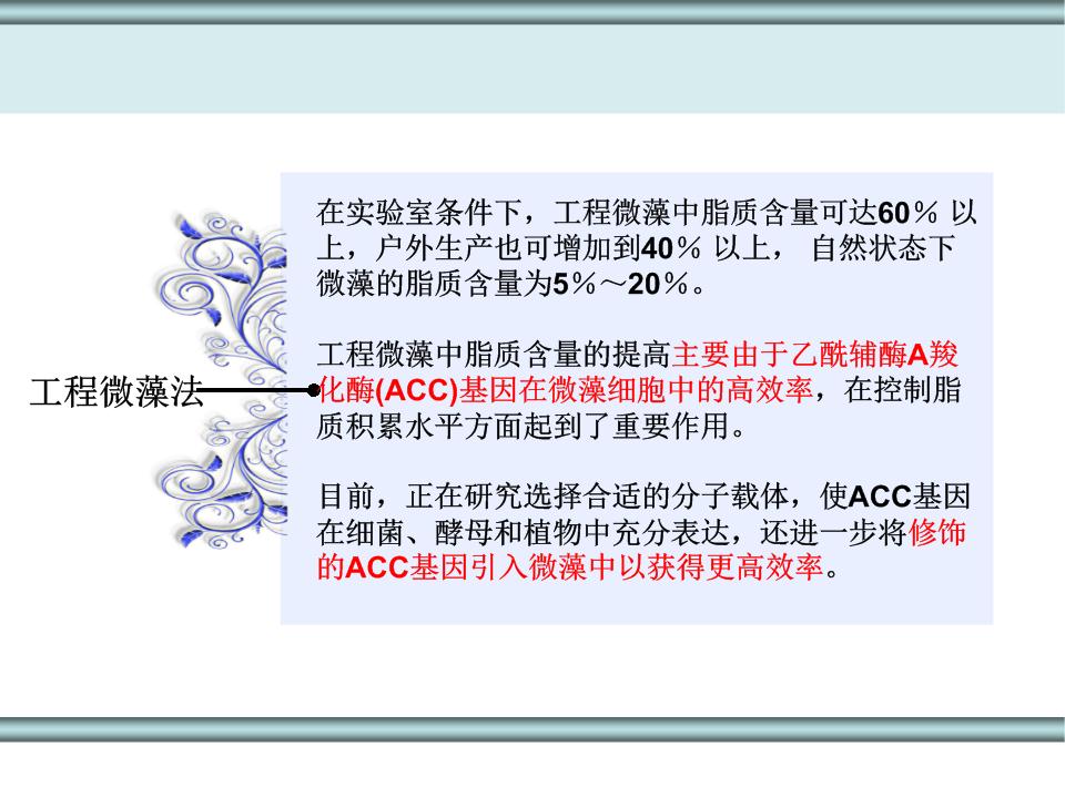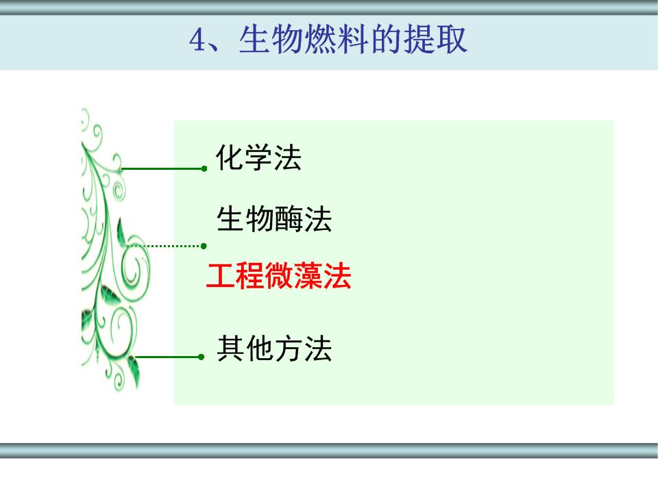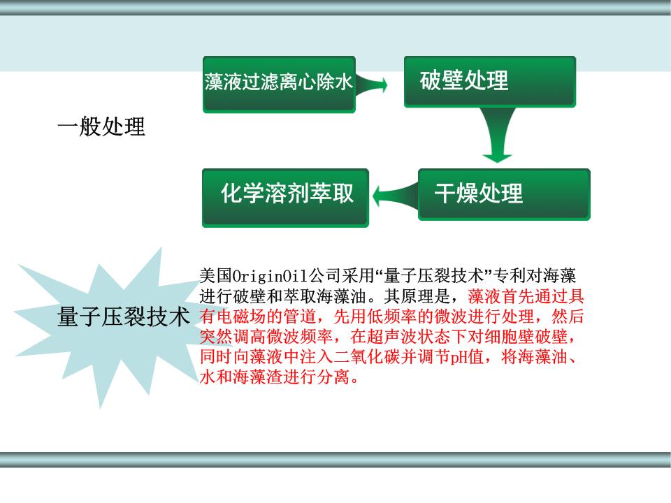 理論上說,如果種植2000 萬至4000 萬英畝的藻類,它們產(chǎn)生的生物原油總量可以達(dá)到目前美國原油進(jìn)口數(shù)量,也就是說,可以真正起到替代進(jìn)口的作用。微型曼哈頓計(jì)劃的目標(biāo)就是要將這一設(shè)想變成現(xiàn)實(shí)。根據(jù)計(jì)劃,一部分科學(xué)家將尋找并培育產(chǎn)油率高的藻類植物;一部分科學(xué)家將致力于研究如何降低藻類植物的收獲成本;另一部分人則研究如何從藻類植物中提取油脂。