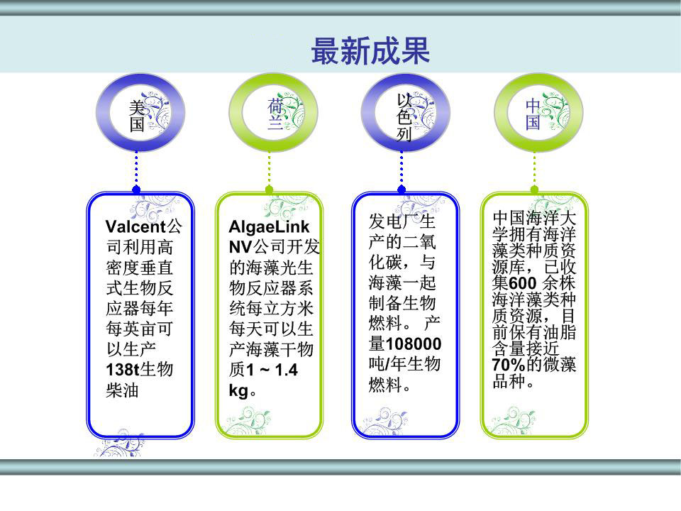 2007 年,美國推出微型曼哈頓計(jì)劃,其宗旨是向海洋藻類要能源,以幫助美國擺脫嚴(yán)重依賴進(jìn)口石油的窘境。能以“微型曼哈頓計(jì)劃”命名,其重要性可見一斑。微型曼哈頓計(jì)劃由美國點(diǎn)燃燃料公司倡導(dǎo)發(fā)起,以美國國家實(shí)驗(yàn)室和科學(xué)家的聯(lián)盟為主體,到2010 年實(shí)現(xiàn)藻類產(chǎn)油的工業(yè)化,達(dá)到每天生產(chǎn)百萬桶生物原油的目標(biāo)。為此,美國能源部以圣地亞國家實(shí)驗(yàn)室牽頭,組織十幾家科研機(jī)構(gòu)的上百位專家參與這一宏偉工程。