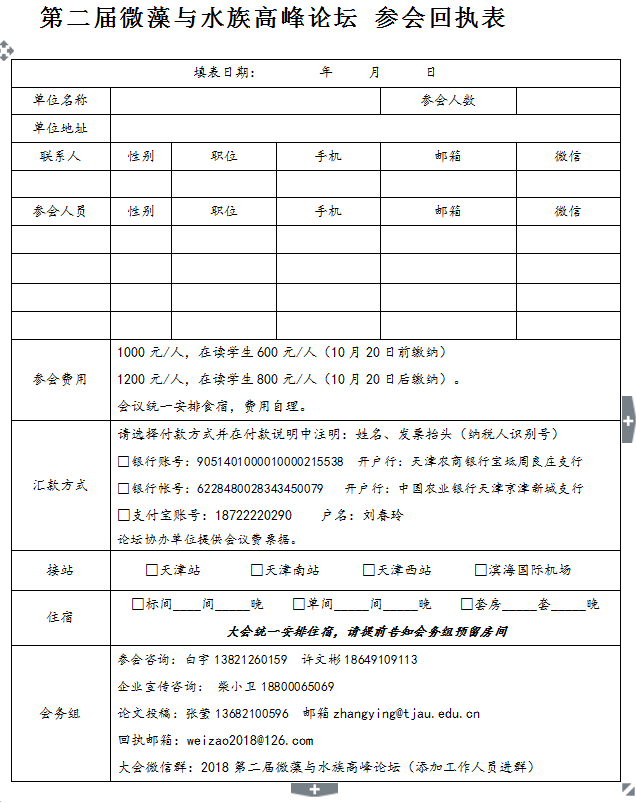 附件:第二屆微藻與水族高峰論壇參會(huì)回執(zhí)表