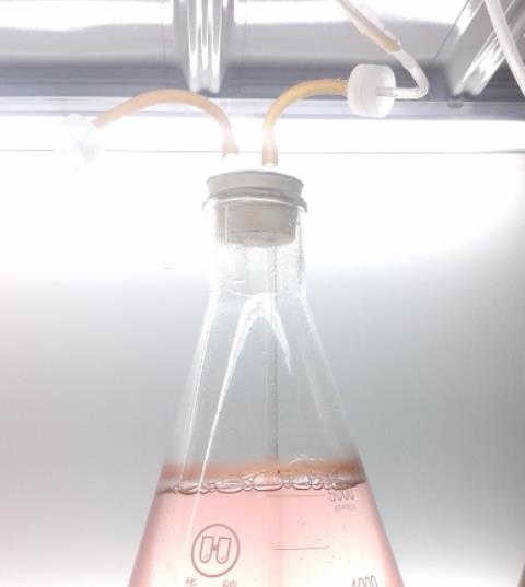 4、泵入含培養(yǎng)基的藻液進行曝氣培養(yǎng)