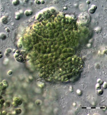 異膠藻單細胞長圓形或橢圓形,長4-4.5μm,?寬2.5-4μm,色素體1個,片狀側生,占藻體大部分,呈黃綠色。海水種類,目前已人工培養(yǎng),是海水養(yǎng)殖育苗中的一種餌料生物。