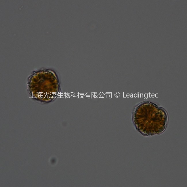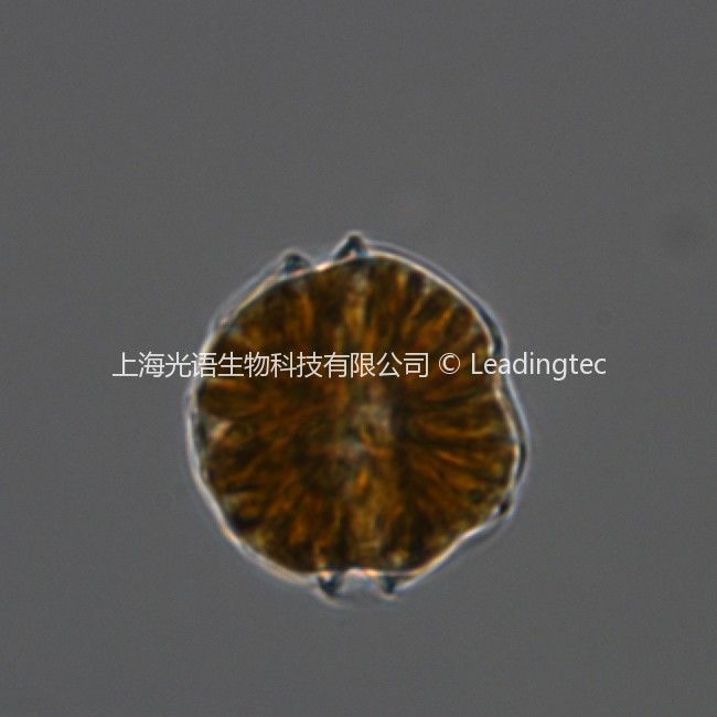 細(xì)胞略近圓形,上殼與下殼半球形,大小相近。細(xì)胞長度在20~42μm,寬度在17~44μm;橫溝明顯左旋;鞭毛2條,藻體呈旋轉(zhuǎn)運(yùn)動(dòng),速度較快。