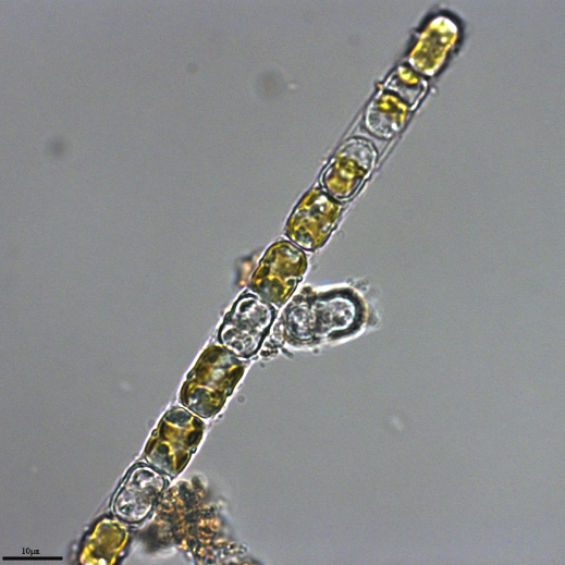 硅藻門,直鏈藻屬。細胞短圓柱形,殼面平,緊連成直鏈,兩細胞間有凹紋。通常10—20個細胞相連成串。細胞直徑8—80微米,一般12—40微米,直徑大于殼環(huán)軸,高5—16微米。細胞壁厚,殼環(huán)面有大形網(wǎng)紋,每10微米內(nèi)有孔8個左右。殼環(huán)面正圓形,有射出狀排列花紋。外側(cè)齒狀突出與鄰細胞相連。色素體多而小。本種為海產(chǎn),沿岸性,分布甚廣,底棲種類,但浮游群中常出現(xiàn)。世界各沿岸分布廣泛,北冰洋、白令海、波羅的海、挪威海和芬蘭、法國西海岸以及地中海、美國阿拉斯加和加利福尼亞、印度尼西亞爪哇、日本、朝鮮半島等均有記錄。中國沿岸也均有記錄,如南海北部灣全年皆有,福建、廈門、臺灣海峽、舟山群