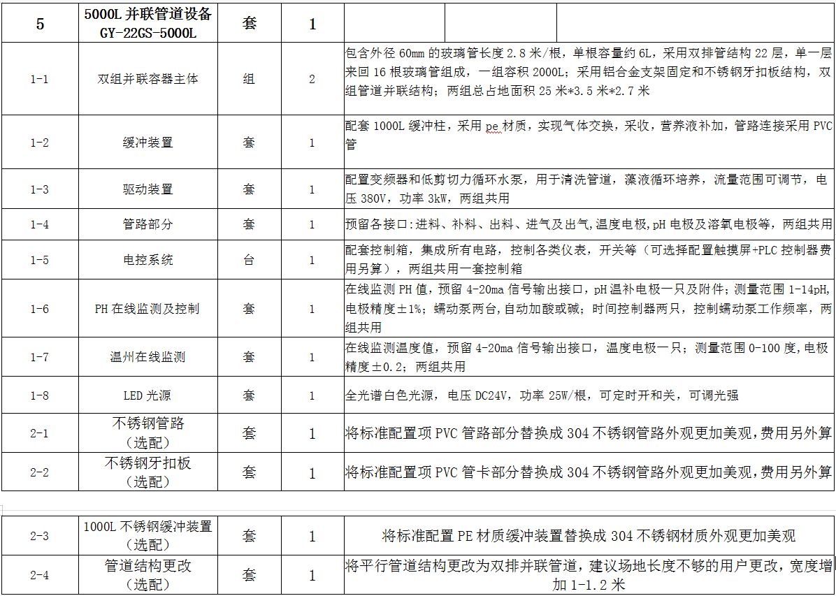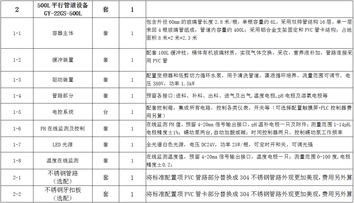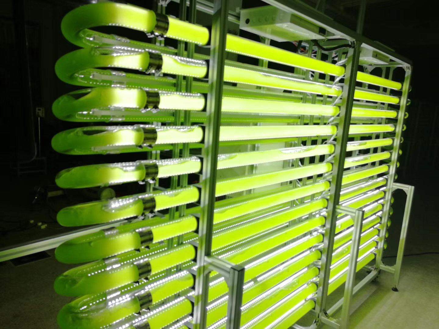 - 可以根據(jù)客戶不同養(yǎng)殖藻類設(shè)計(jì)不同的管道式光生物反應(yīng)器結(jié)構(gòu),隨意增減容量,適應(yīng)于實(shí)驗(yàn)室或者大規(guī)模工業(yè)使用
