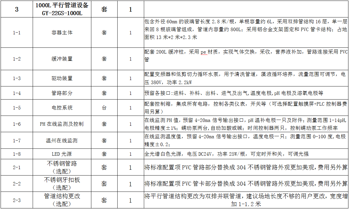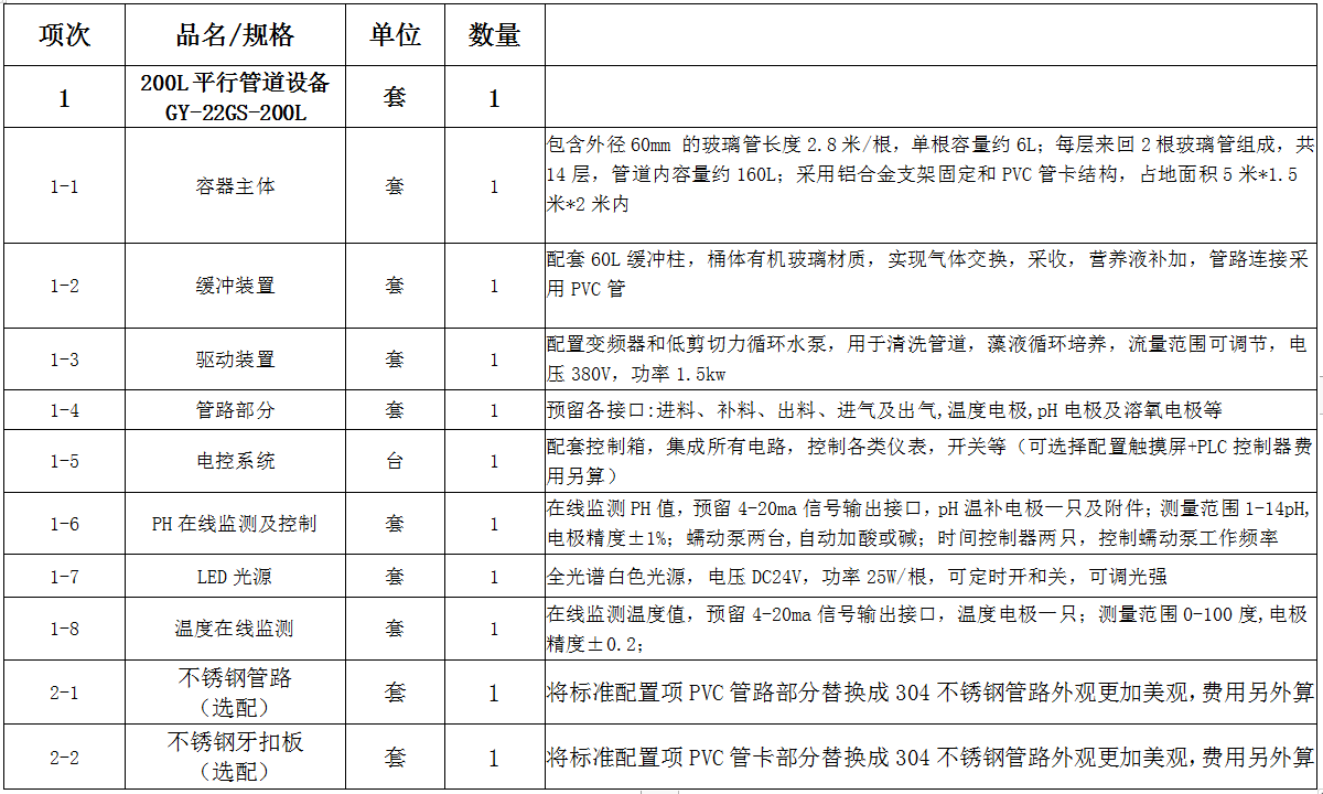 1、可以根據(jù)客戶不同養(yǎng)殖藻類設(shè)計(jì)不同的管道式光生物反應(yīng)器結(jié)構(gòu),隨意增減容量,適應(yīng)于實(shí)驗(yàn)室或者大規(guī)模工業(yè)使用