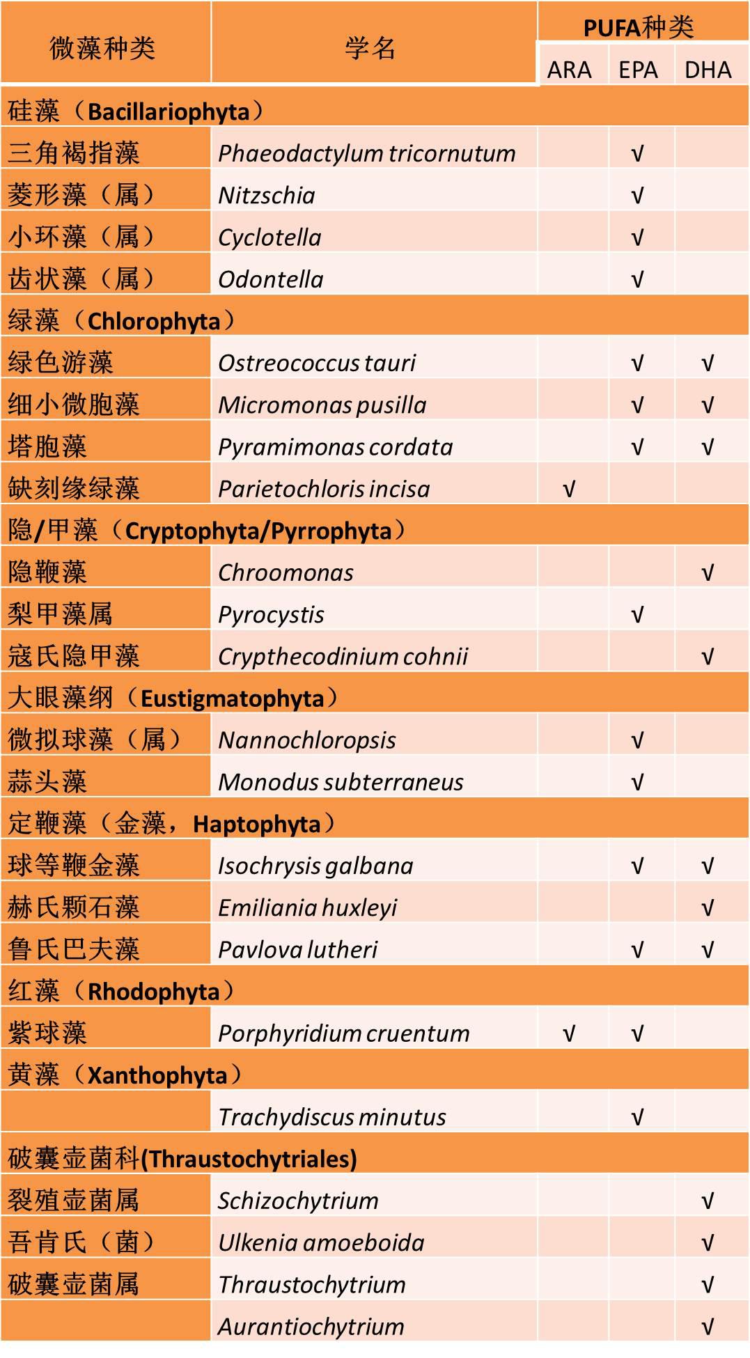 表2.研究和生產(chǎn)中常見的含有PUFA的微藻(菌)種類