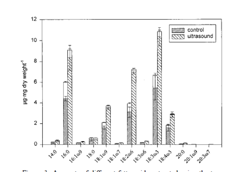柵藻的蛋白含量一般在30-35%左右;有報道,尖頭柵藻S. acutus的蛋白含量可達50%以上;脂肪酸含量在1-15%之間, 16C和18C脂肪酸占絕對優(yōu)勢,其中飽和脂肪酸占總量的一半以上;多糖含量一般10-15%,其中粗纖維含量6%。