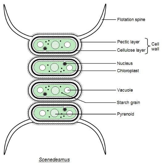 所以現(xiàn)在比較公認的觀點是:傳統(tǒng)觀點上的柵藻被分成狹義的柵藻屬(Scenedesmus?)和鏈帶藻屬(Desmodesmus),前者沒有刺等附屬物,后者包含細胞具刺的種類。