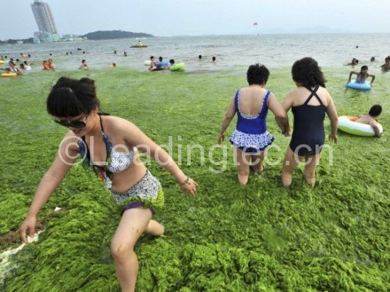 2014年8月9日在伊利湖的藻類爆發(fā)現(xiàn)場(GPS: 41°42′16.1′′N, 83°28′30.0′′W)收集藻類。插圖顯示熱處理前后的干燥藻華。Credit: Da Deng, Wayne State University