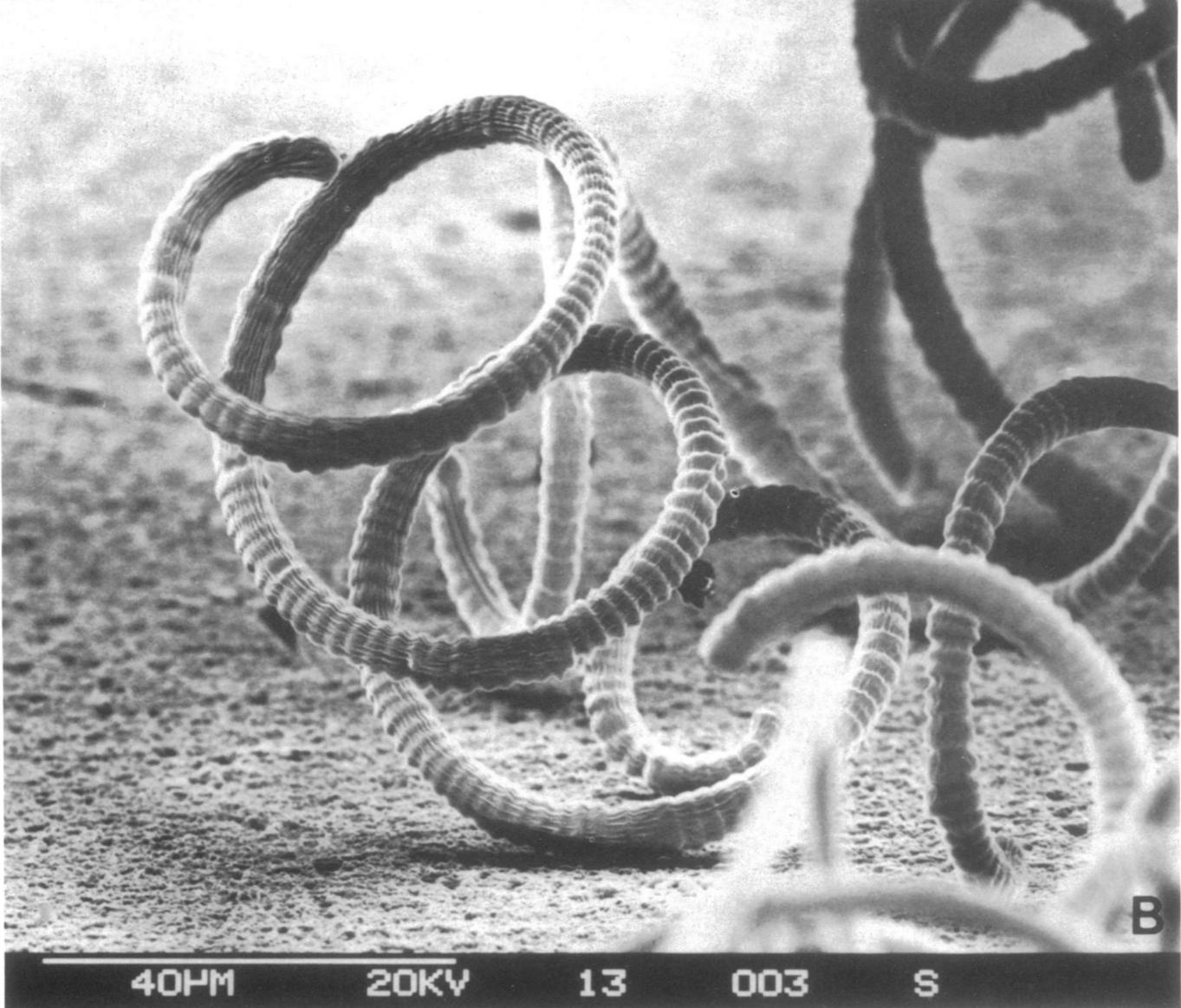 圖4.電鏡下的螺旋藻(Orio Ciferri, 1983)