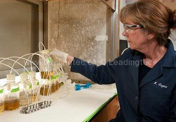 來自特拉華大學(xué)的凱瑟琳·柯尼和她的藻類。(自ENS環(huán)境新聞網(wǎng)) 美國特拉華大學(xué)的科學(xué)家日前證實,海洋藻類赤潮異彎藻可用于制造機動車燃料生物乙醇。該藻類能存活并生長于飽含一氧化氮的煙氣環(huán)境中,但在自然環(huán)境中也可形成有毒的過度藻類繁殖。 特拉華大學(xué)地球、海洋和環(huán)境學(xué)院海洋生物科學(xué)副教授凱瑟琳·柯尼(Kathryn Coyne)和她的研究團隊發(fā)現(xiàn),藻類在煙氣環(huán)境中比在空氣中能產(chǎn)生更多的碳水化合物。她表示 […]…