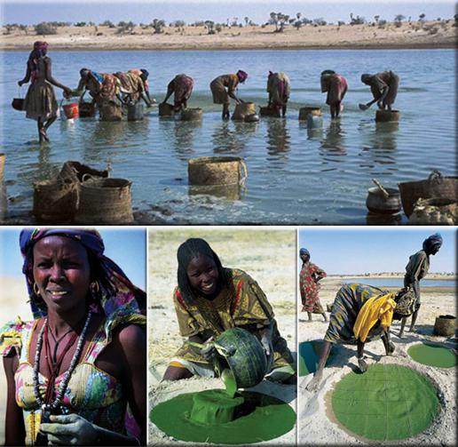 人類利用微藻的歷史可追溯到千年以前,我國漢朝的“蘇武牧羊”里便有記載蘇武“渴飲雪,饑吞氈”,此中的“氈”便指的是一種藍藻——發(fā)狀念珠藻(Nostoc flagelliforme),俗名發(fā)菜,在我國宋朝時期甚至是一種出口產(chǎn)品;我國湖北省鶴峰縣走馬坪鎮(zhèn)的特產(chǎn)——葛仙米,亦是一種藍藻,稱為擬球狀念珠藻(Nostoc sphaeroids),因東晉時期的道教名家葛洪而得名;西班牙殖民者十五世紀末到達美洲時,便發(fā)現(xiàn)阿茲特克人(Aztec)在食用一種從湖里打撈的鏈狀藍藻,即螺旋藻(Spirulina);而法國殖民者在上世紀40年代到達非洲乍得湖時,也發(fā)現(xiàn)當?shù)赝林谑秤寐菪濉?/span>