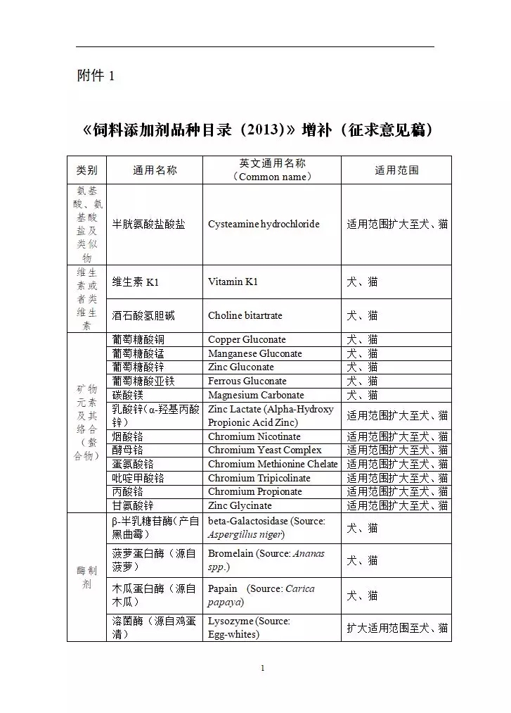 附件:1. 增補《飼料添加劑品種目錄(2013)》(征求意見稿)