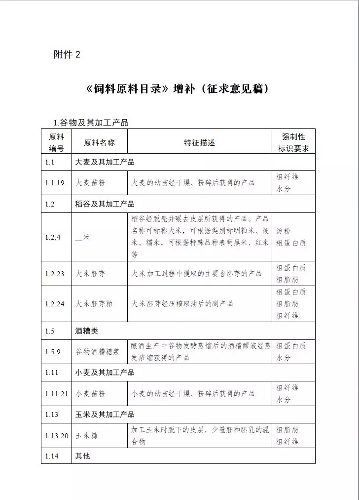 ?2. 增補《飼料原料目錄》(征求意見稿)