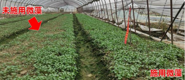 此外,微藻產(chǎn)品作為活藻細胞,富含大量的大、中、微量元素以及蛋白質(zhì)、氨基酸、核酸、多糖、維生素等養(yǎng)分,可以全方面供給養(yǎng)分,提高肥料利用率,使作物增產(chǎn)增收;產(chǎn)品能夠改良土壤團粒結(jié)構(gòu),提高土壤有機質(zhì)含量,豐富土壤微生物的多樣性及數(shù)量,同時還能起到調(diào)節(jié)土壤pH值、改良鹽堿地,促使土壤養(yǎng)分的逐步釋放;同時可高效拮抗多種植物病原真菌,施入土壤后能夠迅速繁殖成為優(yōu)勢菌群,控制根際營養(yǎng)和資源,促進植物根系健壯生長。