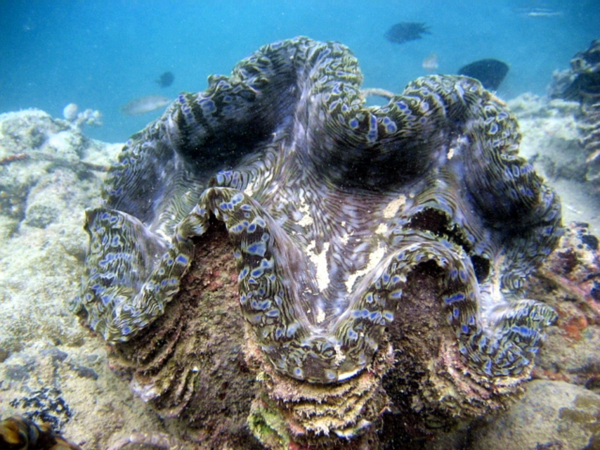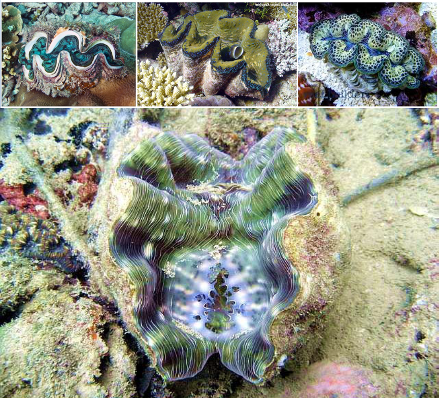 圖12. 漂亮的硨磲(硨磲工藝品用的多是玉化的硨磲殼,現(xiàn)殺的殼,估計(jì)得埋海底N萬年才能玉化,所以,請保護(hù)硨磲!)(上圖引自網(wǎng)絡(luò),下圖為硨磲H.?hippopus,by Hernawan)