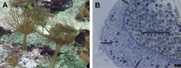圖16. ??ˋiptasia pulchella,圖A),顯微照片(圖B)顯示體內(nèi)含有蟲黃藻 (by Weng et al.)