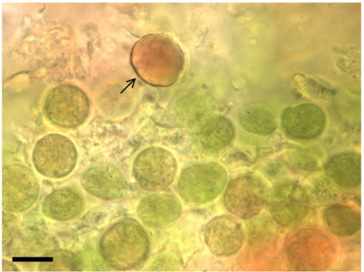 圖24. 與斑點(diǎn)蠑螈卵有關(guān)聯(lián)的微藻類,其共生藻估計(jì)是其中的某一種或幾種。(http://algae.eeb.uconn.edu)